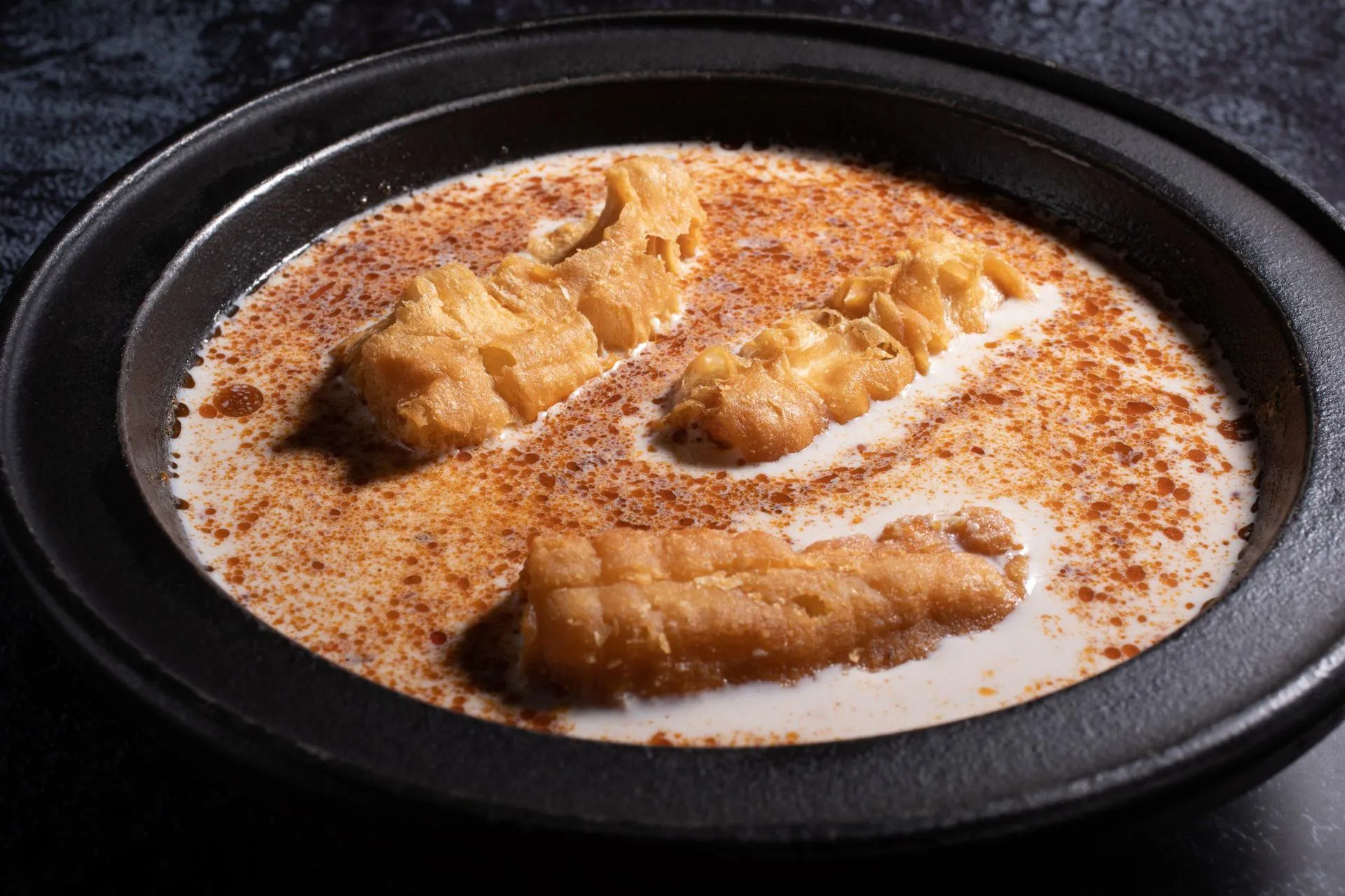 服務員介紹了店內的各種湯底,包括手炒石頭火鍋、蒜頭鍋、剝皮辣椒鍋、燒酒鍋、自然發酵酸白菜鍋及泡菜鍋等。我決定選擇一份麻奶鍋,聽說這是店內的招牌之一。