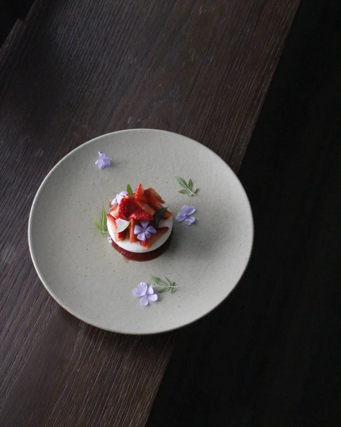 隱弄位於繁忙的城市巷弄之中,臨近光華夜市,但進入店內後,卻能感受到一種與外界隔絕的寧靜氛圍。店內的設計以法式工業風為主,溫暖的胡桃木色調與水泥牆搭配柔和的燈光,營造出了一種舒適又富有儀式感的空間。無論是要和客戶進行重要會議,還是舉辦小型慶典,這裡的環境都極為適合。 這次的體驗,我特意選擇了隱弄的法式下午茶套餐,想深入了解他們的整體用餐氛圍與甜點水準。套餐從開胃小點開始,前甜點、風味飲品和主甜點相繼上桌,整個過程井然有序,每一道菜的擺盤和口感都經過了細緻的設計,讓整場用餐不僅是一場味覺盛宴,更是一場充滿儀式感的體驗。